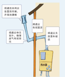秋冬季节使用天然气热水器时,要勤检查热水器烟道、烟帽,确保天然气燃烧产生的废气能够全部排到室外。