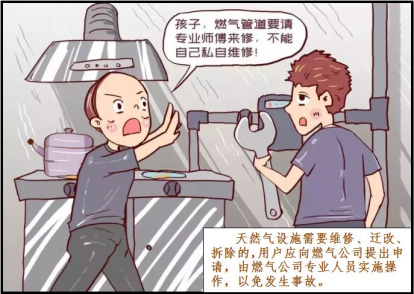 (2)电器设备,禁开禁关。有燃气泄漏的区域,千万不要开启或关闭任何电器,包括不能启闭照明灯、抽油烟机、换气扇等,更不能携带手机进入天然气泄漏区域,以免产生火花,引发爆炸。