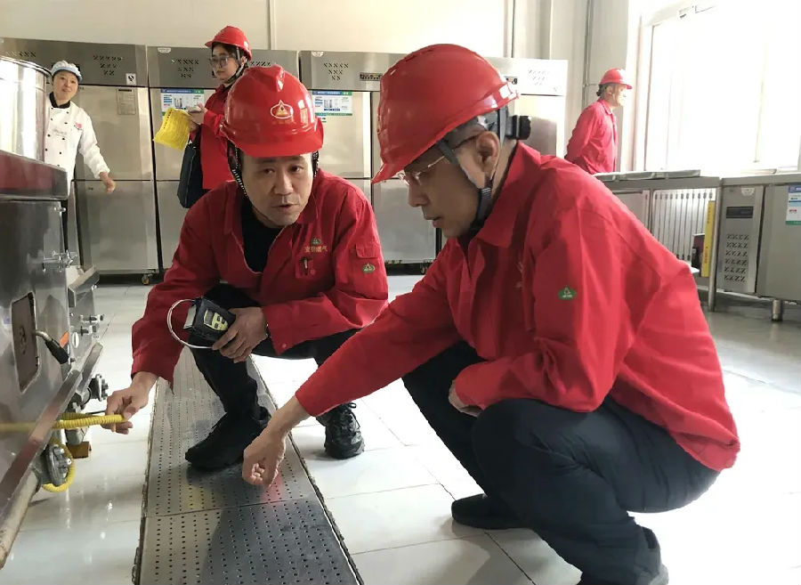 本次检查由公司领导班子成员分组带队,重点围绕场站运行、管网巡检、施工监护、居民用气及办公区域安全等关键环节开展全覆盖专项安全检查,并将人员密集的公服用户作为此次检查的重中之重。在爱琴海购物公园检查时,检查组不仅检查了燃气管道、灶具等设施的使用状况,还对相关工作人员进行了安全用气知识培训,指导他们如何正确使用燃气设备、如何在紧急情况下进行应急处置。同时,工作人员还提醒公服用户在五一假期人员流量增大的情况下,更要关注燃气设施运行状态,保障用气安全。