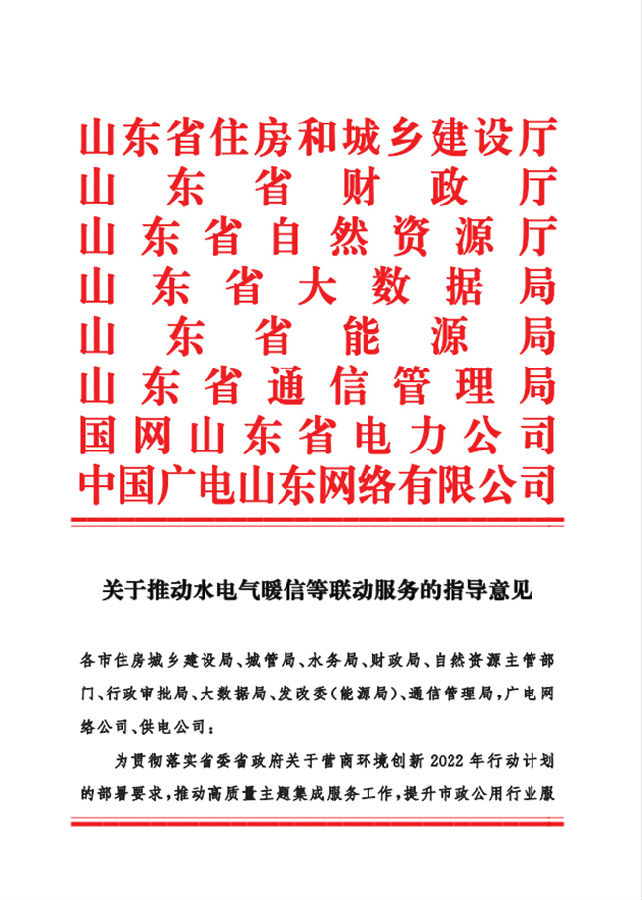 关于推动水电气暖信等联动服务的指导意见