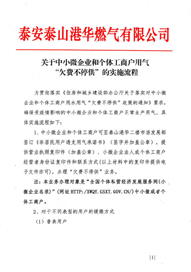 关于中小微企业和个体工商户用气“欠费不停供”的实施流程