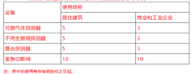 表3.1. 3 城镇燃气报警控制系统中的相关设备的使用寿命 (年)