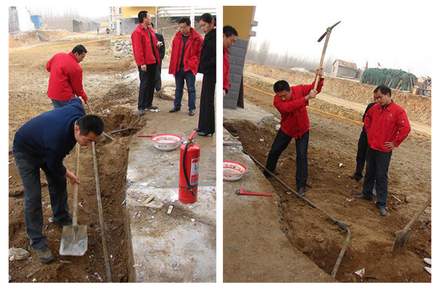 抢修队员现场清理作业带与公司领导亲自上阵开挖工作坑