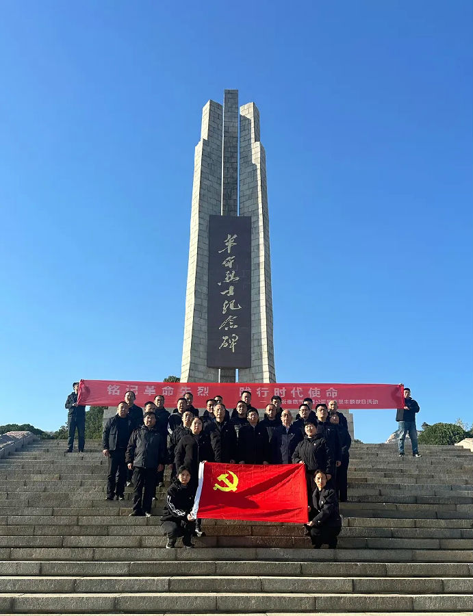 活动在庄严的国歌声中拉开序幕,全体成员肃立致敬,用激昂的旋律表达对祖国的忠诚与对革命先烈的深切缅怀。活动中,全体党员面向党旗,高举右拳,庄严宣誓:“我志愿加入中国共产党……随时准备为党和人民牺牲一切!”铿锵誓言回荡在陵园内,进一步坚定了党员的理想信念。